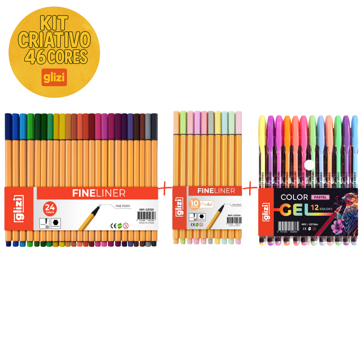 Kit Canetas Glizi – 24 Fineliner + 10 Fineliner Pastel + 12 Color Gel Pastel